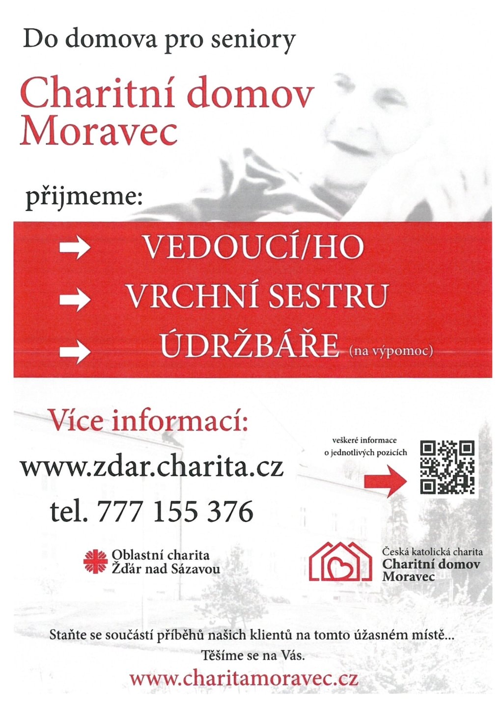 Podrobné informace o jednotlivých pozicích, požadavcích a termínu podání přihlášek naleznete na webových stránkách www.zdar.charita.cz.