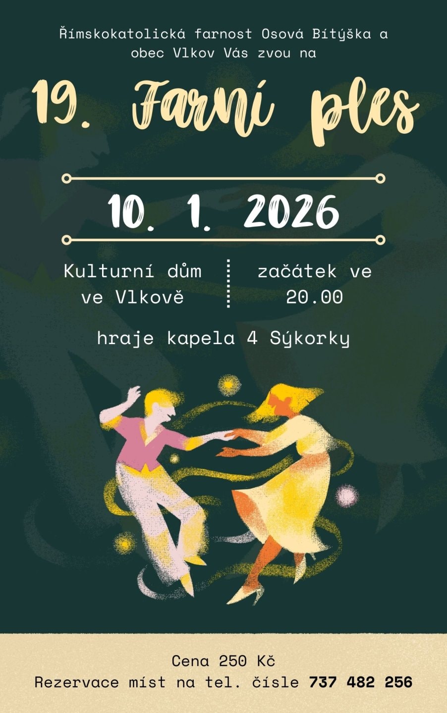 Římskokatolická farnost a obec Vlkov vás srdečně zvou na Farní ples.
